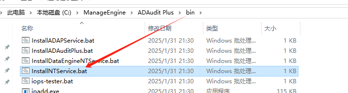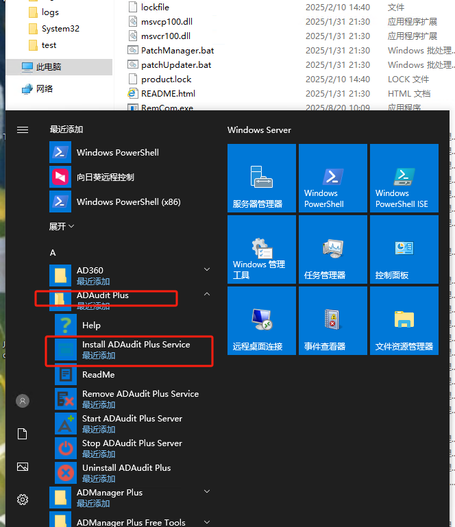开始里面选择ADAudit Plus对应的安装目录下面的Install ADAudit Plus Service.