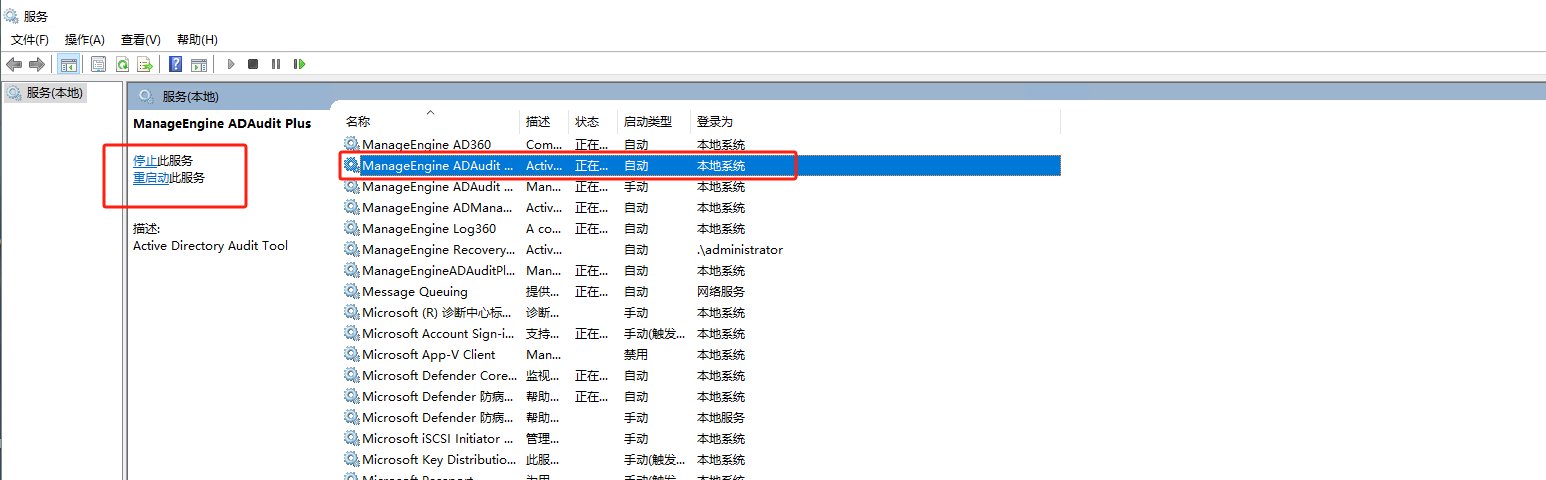 ----安装为服务后,启动该服务(ManageEngine ADAudit Plus),,如下效果图: