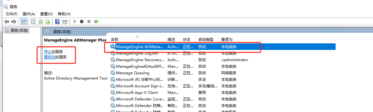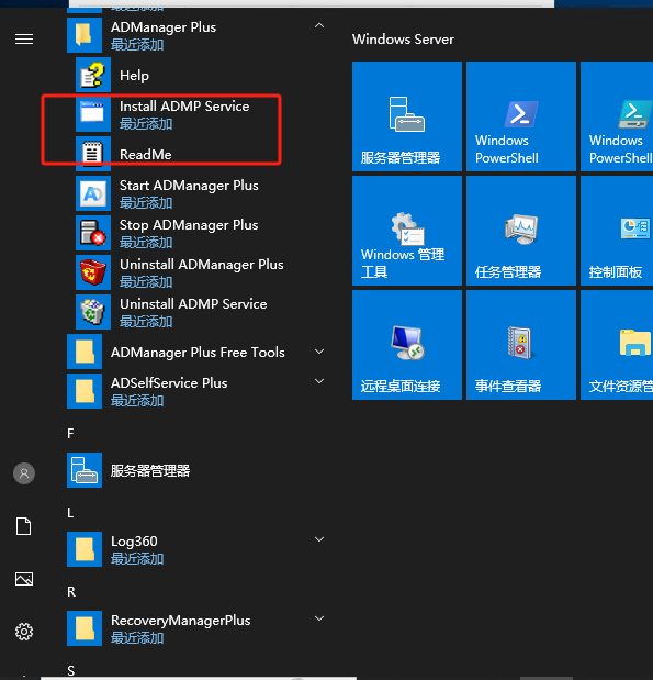开始里面选择ADManager Plus对应的安装目录下面的Install ADManager Plus Service.