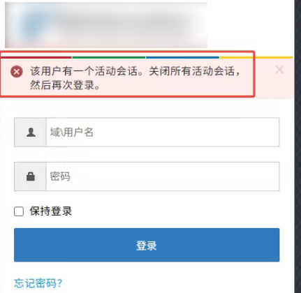 中文报错:该用户有一个活动会话。关闭所有活动会话,然后再次登录。