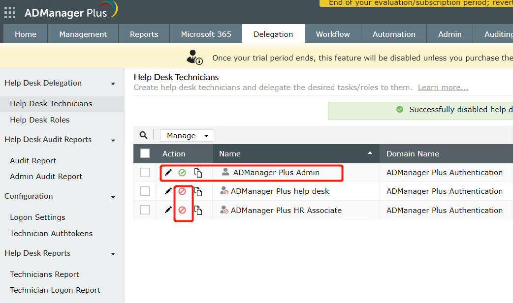当您删除技术员时,所有关闭的请求、问题和变更将会仍然显示指派给他的名字,作为历史追溯的参考。 而处于其它状态(已解决、打开等,除了关闭以外的)的请求、问题和变更,请求将会被置为未指派状态。