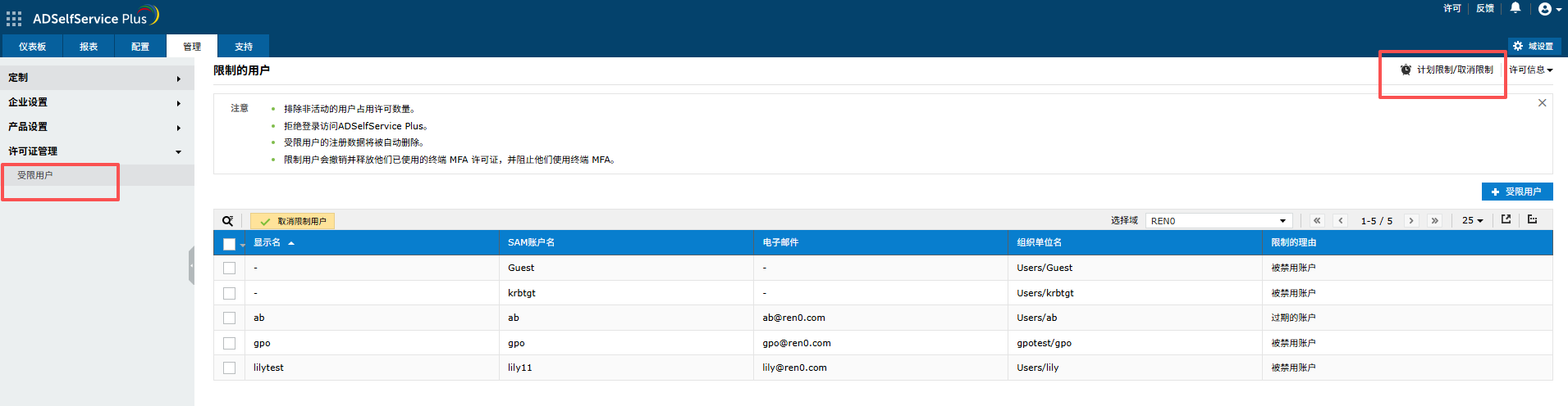 如果以上的限制用户因状态发生改变,如:被禁用的用户改为启用用户等,能自动取消限制,可在如下的位置进行设置: