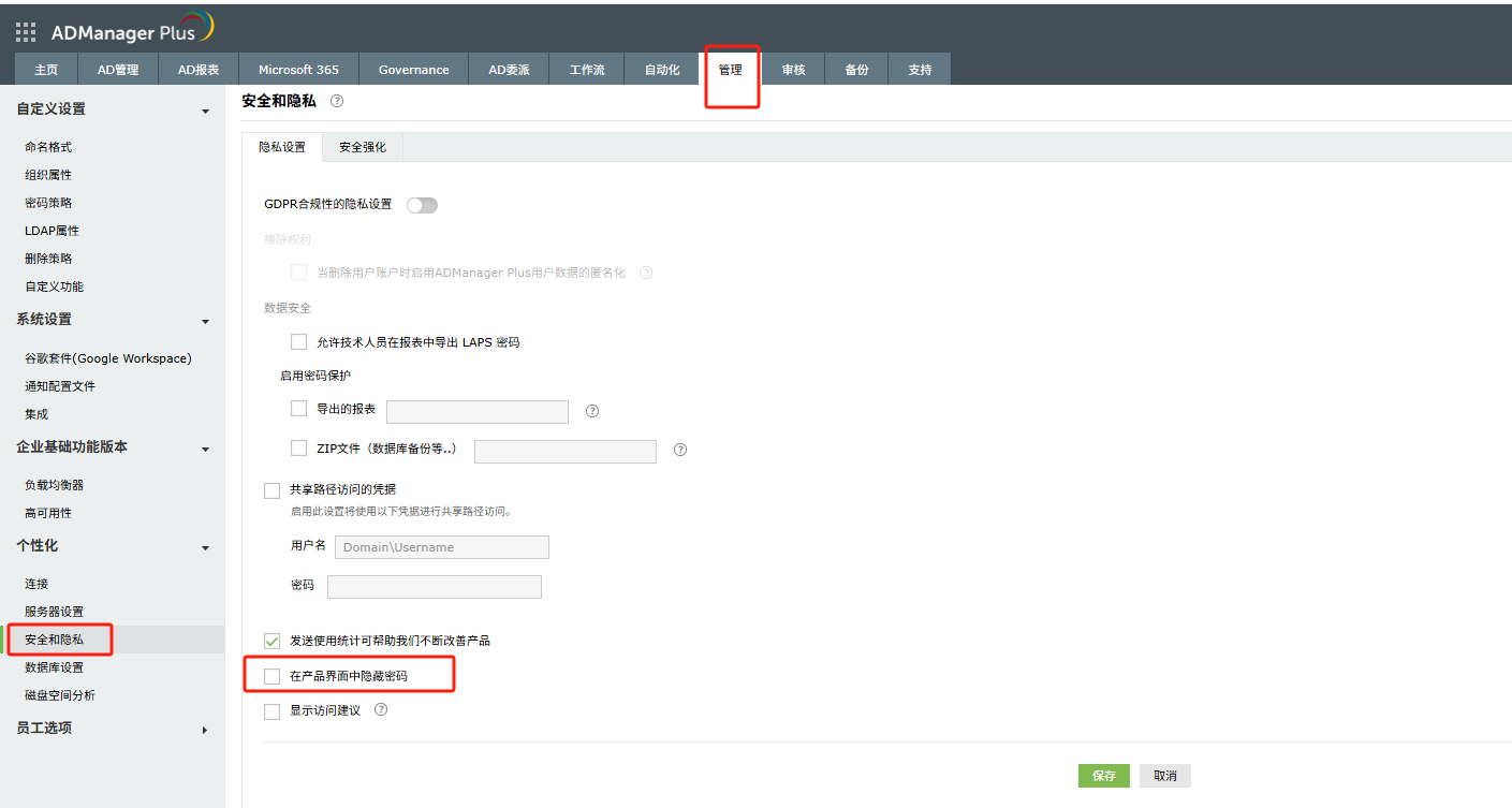 如果想要显示已重置或者新创建用户的密码在产品界面或者是报表里,请从以下三个位置进行配置: