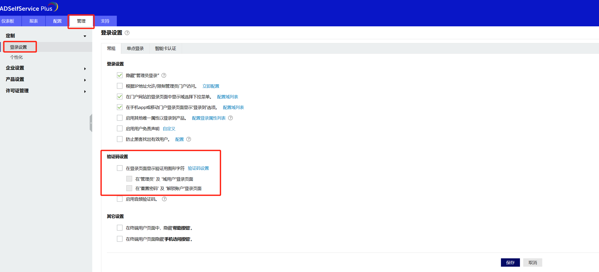8.此处不勾选“在登录页面显示验证图形字符”,点击保存