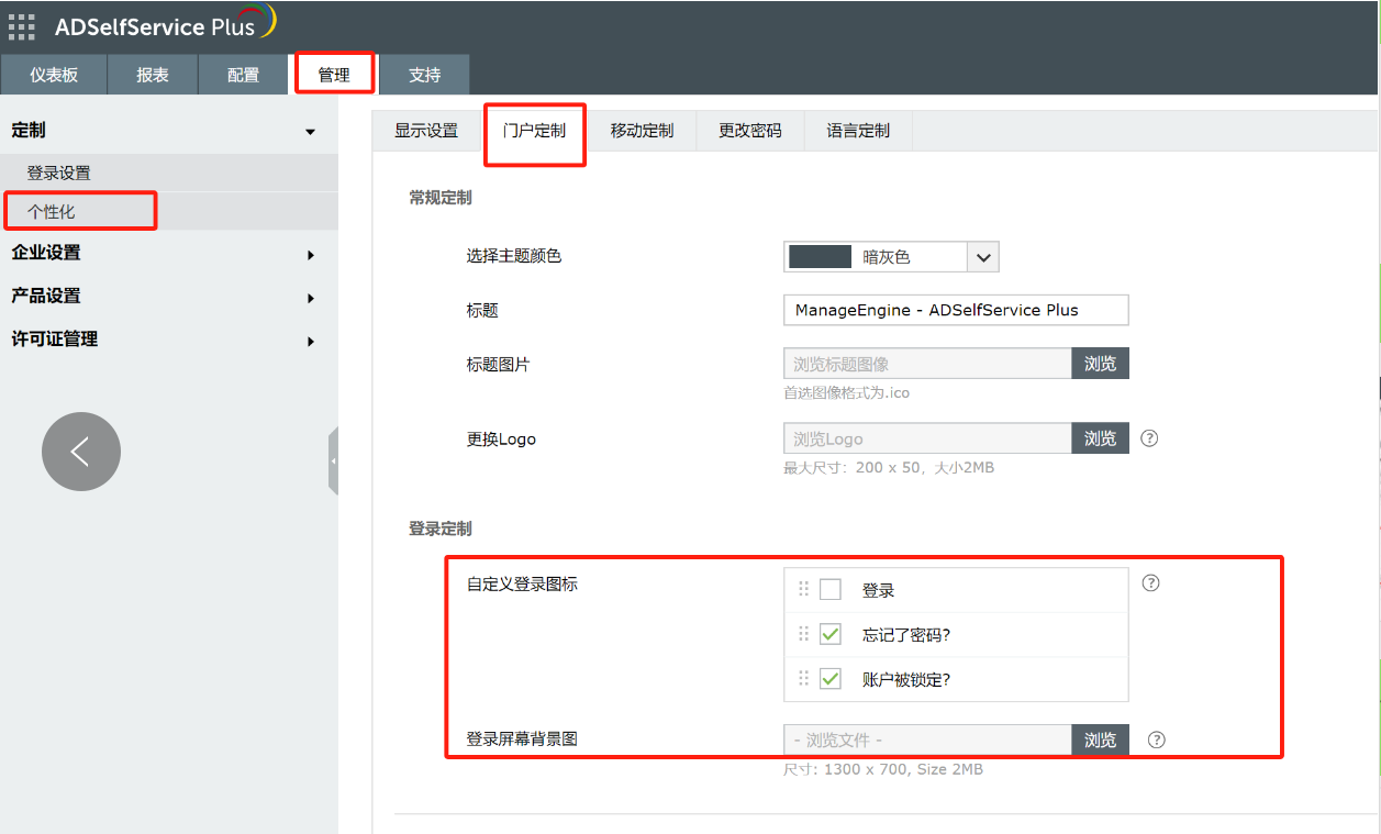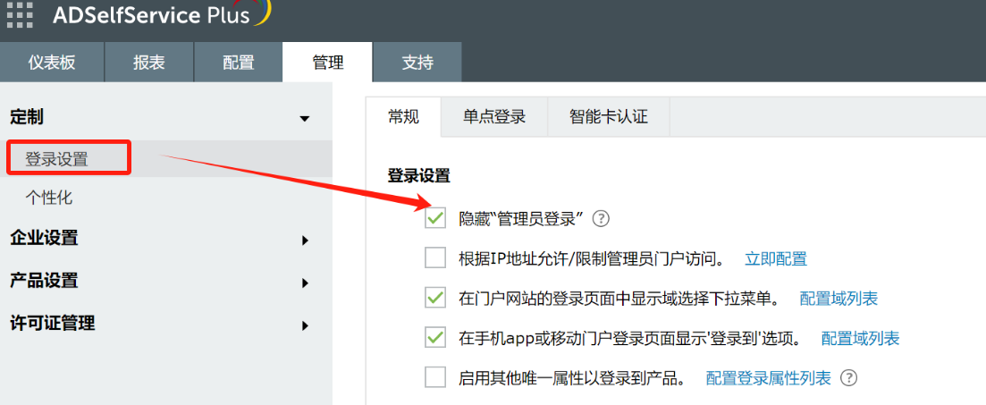 ADSSP登录界面可以只留重置密码、解锁账户,取消登录的框吗?