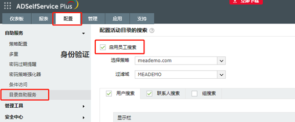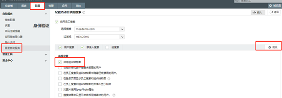 ADSSP终端用户登录界面如何关闭搜索功能和显示的组织结构?