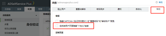 ADSSP终端用户登录界面如何禁用个性化设置?