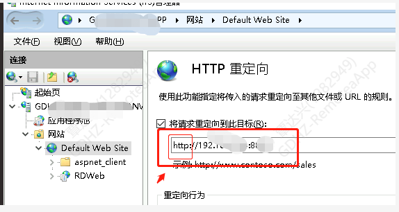 如果可以正常访问,请查看重定向的URL是否配置正确:(如下图中配置不正确,需只保留IP和端口号(去掉http:// ))