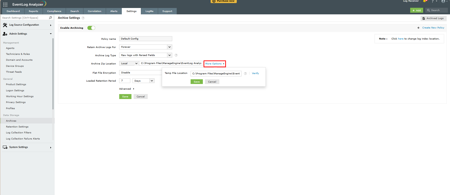 我们已全面检查了 Elasticsearch 文件,并确认实时日志和归档日志的路径设置正确。我们也在用户界面中进行了核查。