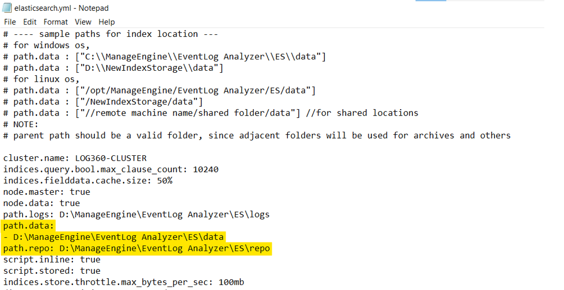 Analyzer 主目录>\ES\config\elasticsearch.yml 中的 path.data 和 path.repo 两个参数,将其更新为新的路径
