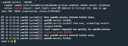 先把被锁定的服务状态恢复正常,否则即使配置修好了也启动不了:sudo systemctl reset-failed pam360.service2. 停止当前的失败计时器