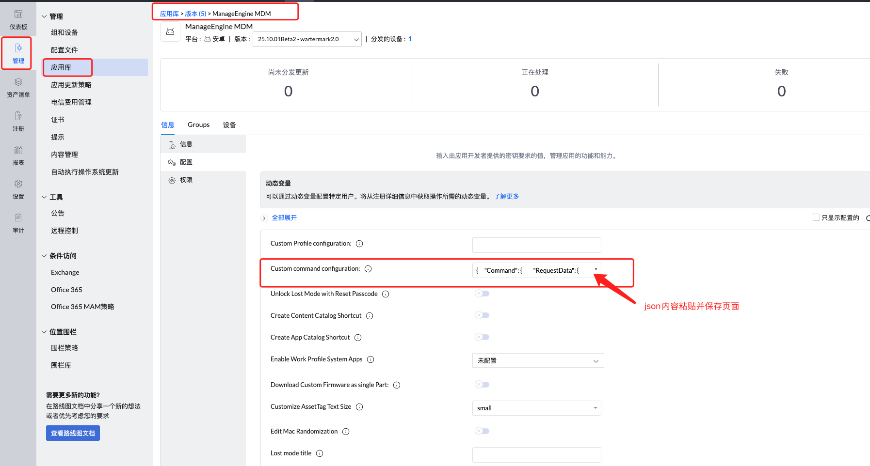 EmbeddedWaterMarkText —— 水印内容,可使用变量 %username%、%devicename%、%email%等,可在配置文件 -- 资产标签里查询相关变量。 EmbeddedWaterMarkTextColor —— 字体颜色 EmbeddedWaterMarkStrokeColor —— 字体边框颜色 EmbeddedWaterMarkSize —— 字体大小 EmbeddedWaterMarkThickness —— 字体粗细,可设 normal 、bold 、semibold EmbeddedWaterMarkTextOpacity —— 透明度 EmbeddedWaterMarkAngle —— 角度,可设 vertical 、diagonal EmbeddedWaterMarkLineSpacingFactor —— 垂直间距 EmbeddedWaterMarkHorizontalSpacingFactor —— 水平间距 |