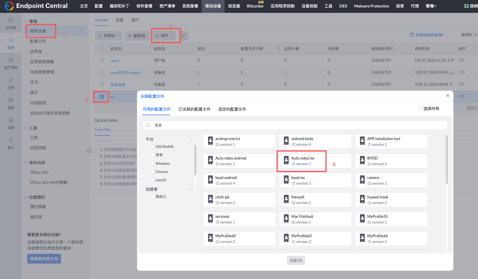 2. 登陆EC/MDM控制台,进入移动设备 -- 管理 -- 配置文件,创建安卓/iOS配置文件。