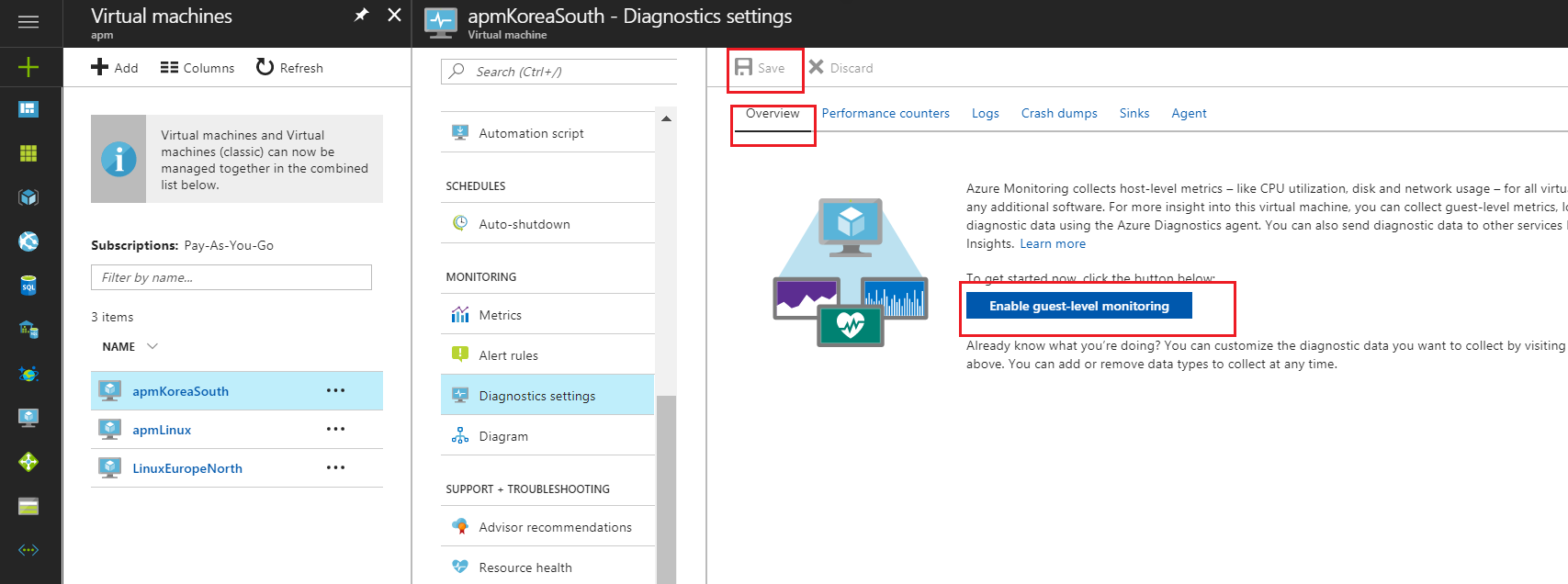 Microsoft Azure VM - 为Windows和Linux VM启用诊断扩展