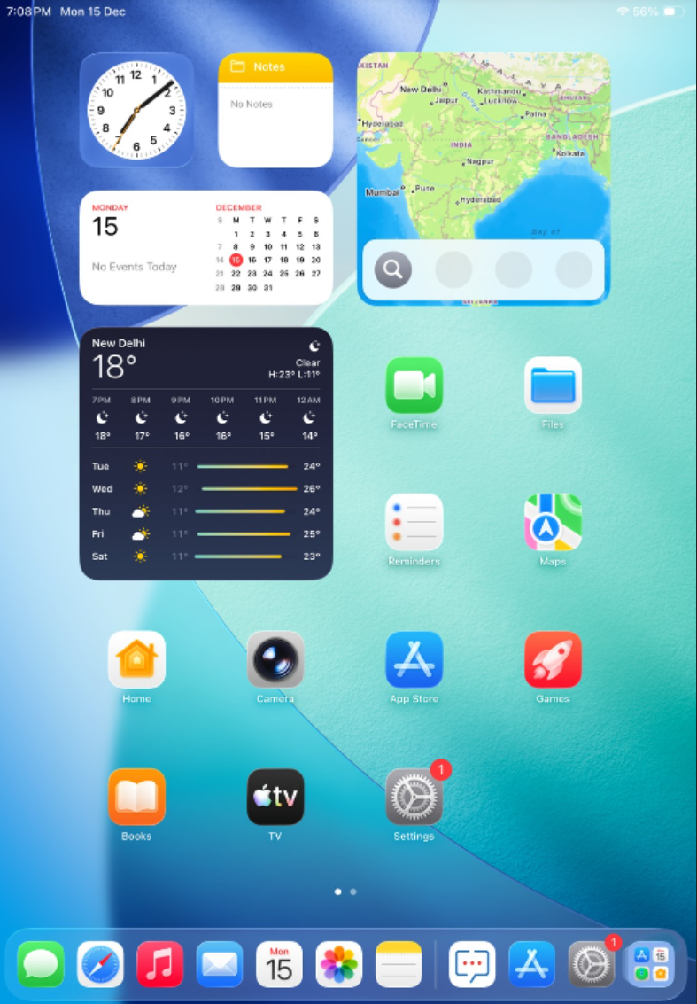 第一行(First Row)和 Dock 栏内容