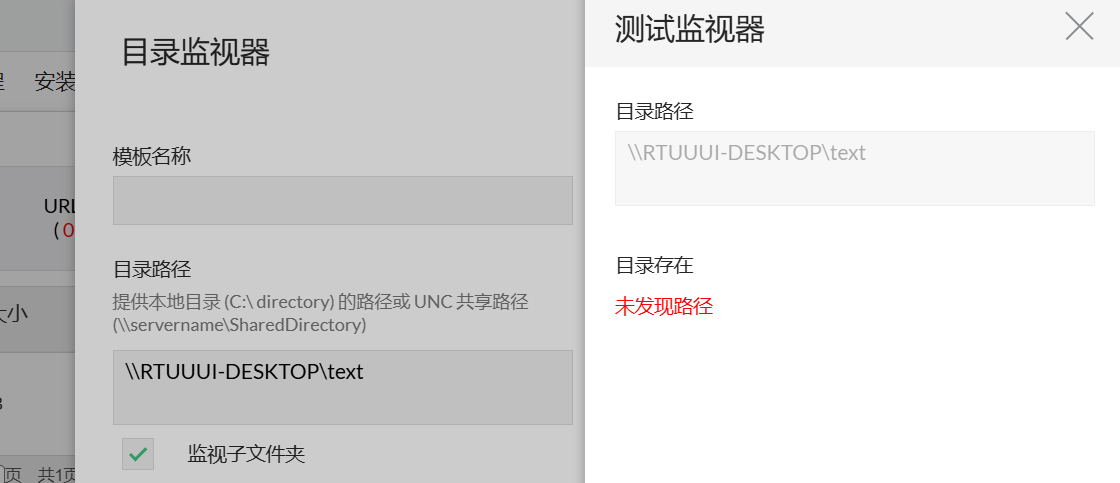 因此,请提前为共享文件夹创建网络位置,通过绝对路径添加目录监视器。