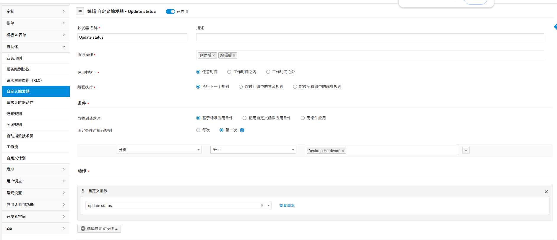 思路:因为自定义触发器的执行过程刚好在RLC之后,因此可以改为用自定义触发器来实现类似需求。