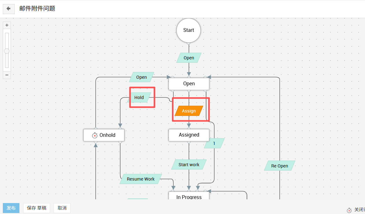 一线工程师之前是“请求已提交”状态。那个状态客户需要跳过,希望RLC过程通过配置了一定的规则,用户提交之后根据特定字段的值来自动到达“一线工程师”或“事件经理”