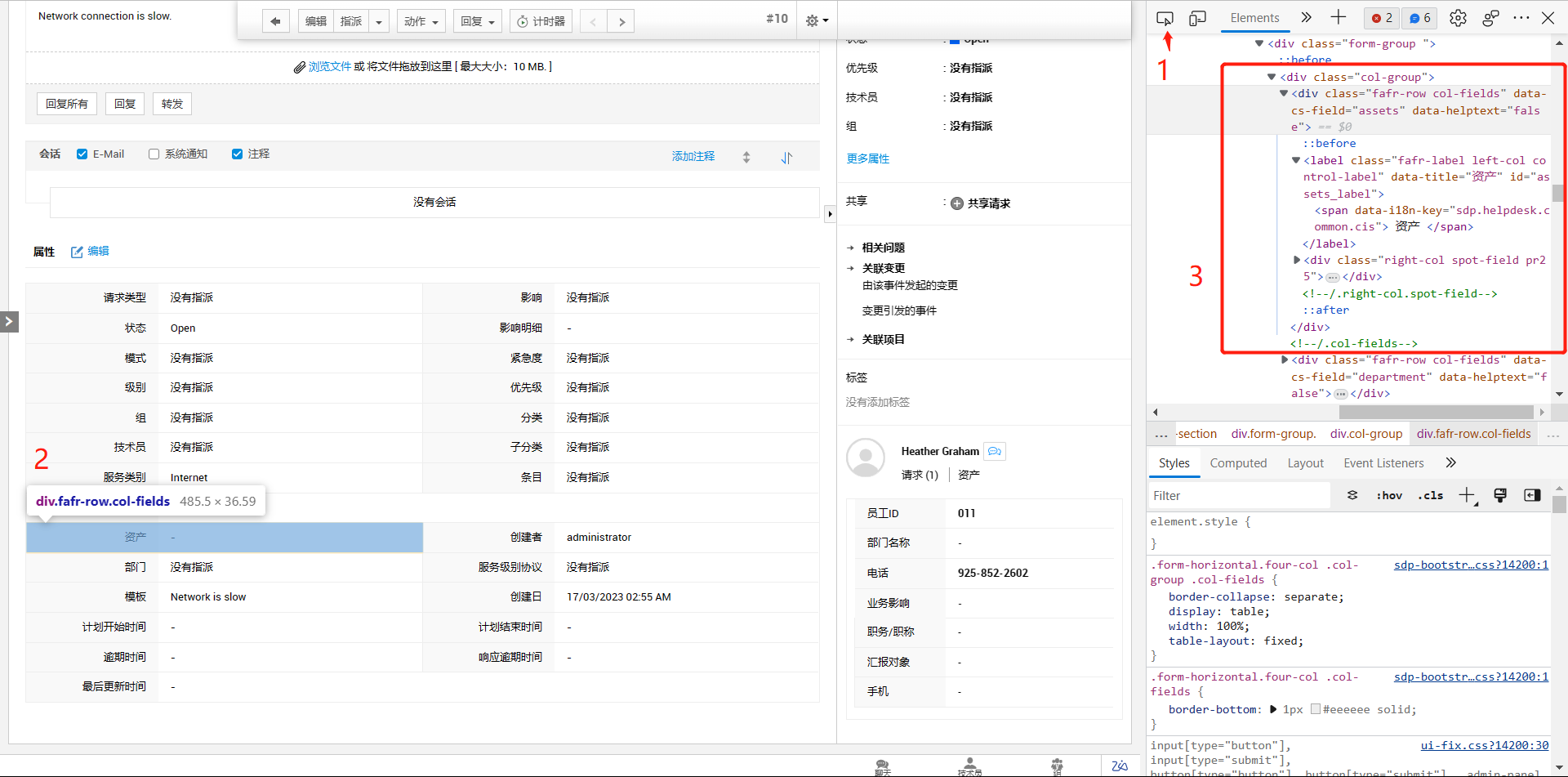 如需在工单详细页面隐藏字段。主要使用 jQuery 的隐藏方法 .hide()