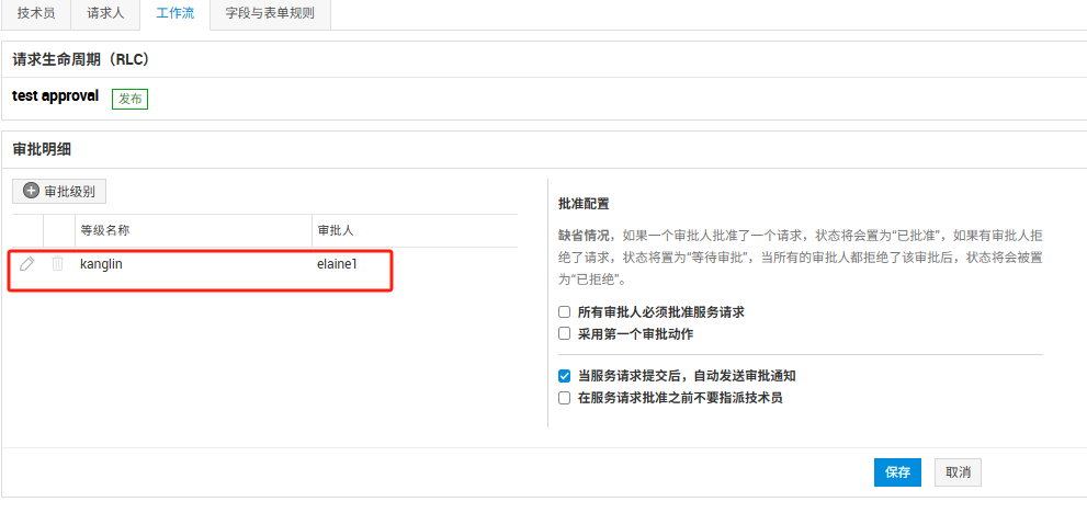 2. 为服务模板设置至少一级审批流